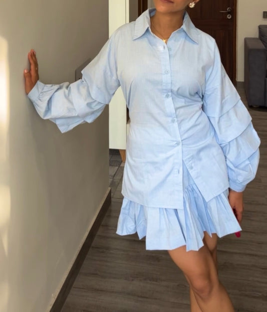 Ice Blue Cotton Poplin Ruffle Skort Set