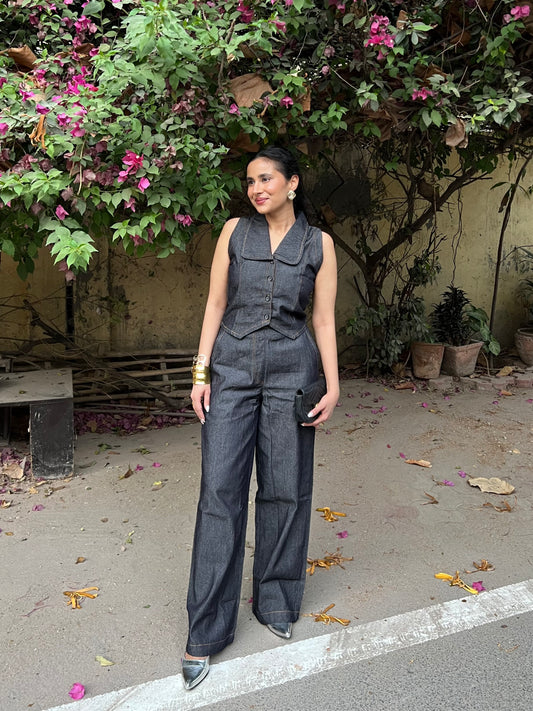 Lightweight cotton Jacquard Strapless Corset Barrel Pant Set