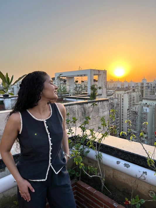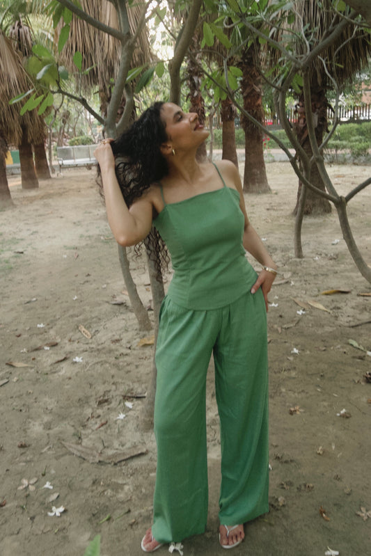 Sage Green Cotton Linen Boned Corset Top & Pants Set