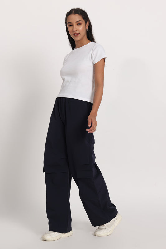 White Rib Tshirt & Navy Blue Parachute Cargo Co-ord