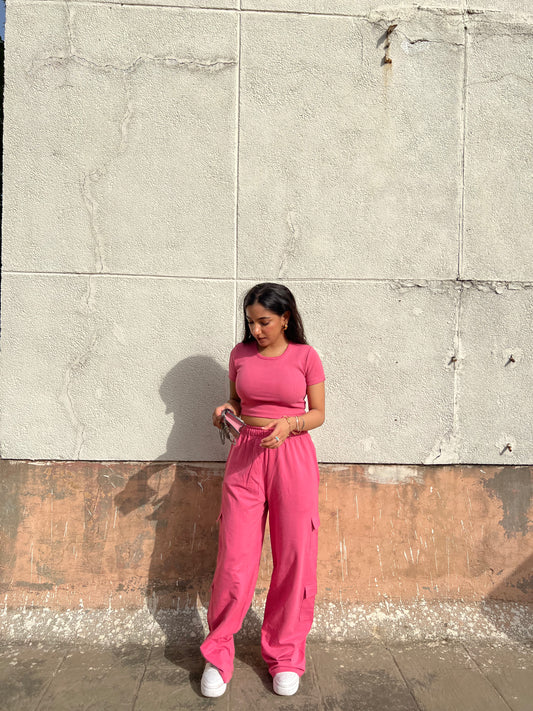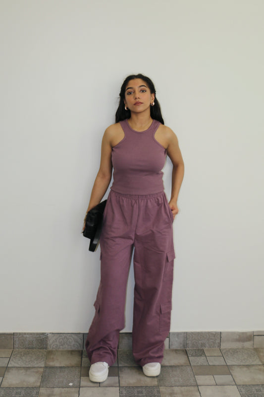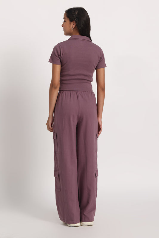 Mauve Half Sleeves French Terry Cargo Co-ord