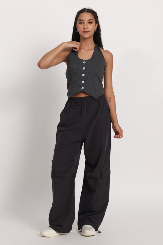 Black Waistcoat Parachute Cargo Co-ord