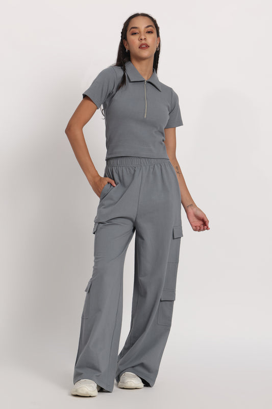 Grey Half Sleeves French Terry Cargo Co-ord