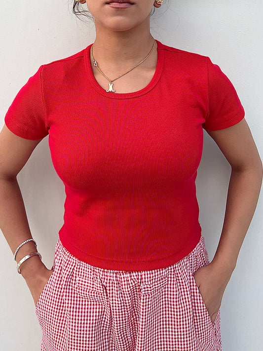 Sold outRed Half Sleeves Gingham Pant Set