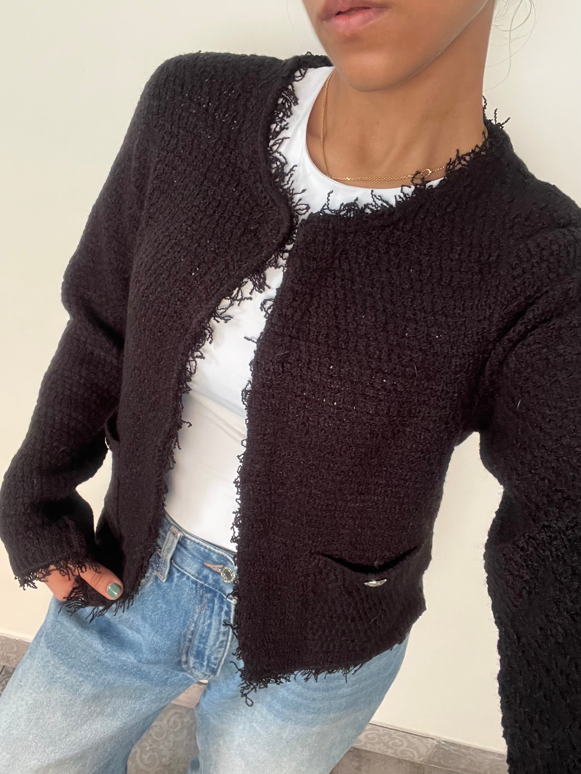 Wrap yourself in effortless style with this soft, lightweight woollen sweater. Designed for comfort without the bulk, it feels luxuriously gentle on the skin while keeping you perfectly warm. The fabric is incredibly soft — the kind that doesn’t irritate or itch, more like being wrapped in a little ball of fur. The metallic buttons on the pocket add just the right touch of shine, giving this piece a subtle, chic edge. Wear it open as a light layer over your favorite top, or hook it closed for a neat, flattering look. Whether paired with jeans for a casual day out or a skirt for a more refined vibe, this sweater is the kind of cute and versatile piece you’ll reach for again and again.