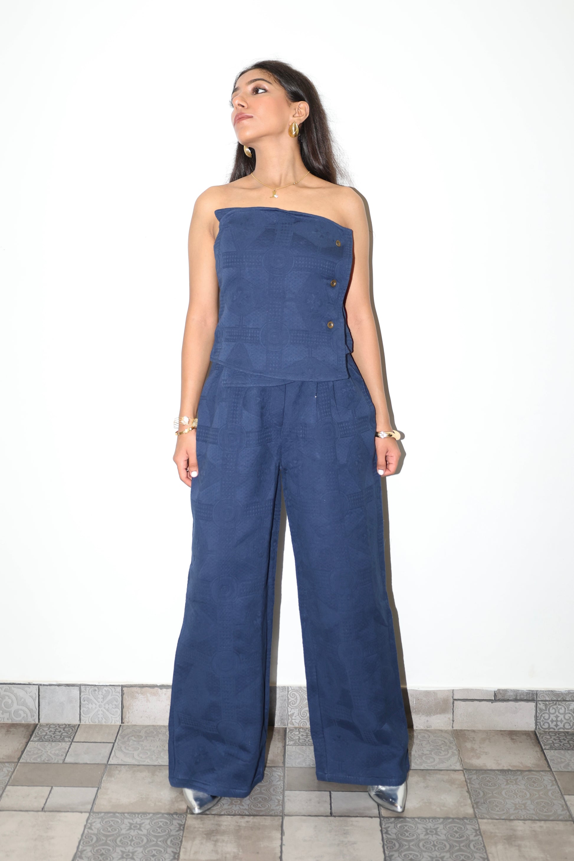 Lightweight Jacquard Strapless Corset Barrel Pant Set