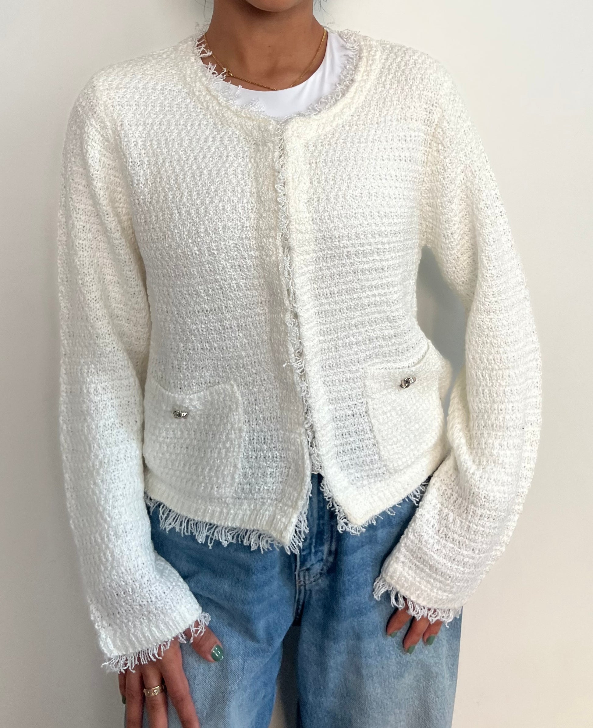 Wrap yourself in effortless style with this soft, lightweight woollen sweater. Designed for comfort without the bulk, it feels luxuriously gentle on the skin while keeping you perfectly warm. The fabric is incredibly soft — the kind that doesn’t irritate or itch, more like being wrapped in a little ball of fur. The metallic buttons on the pocket add just the right touch of shine, giving this piece a subtle, chic edge. Wear it open as a light layer over your favorite top, or hook it closed for a neat, flattering look. Whether paired with jeans for a casual day out or a skirt for a more refined vibe, this sweater is the kind of cute and versatile piece you’ll reach for again and again.