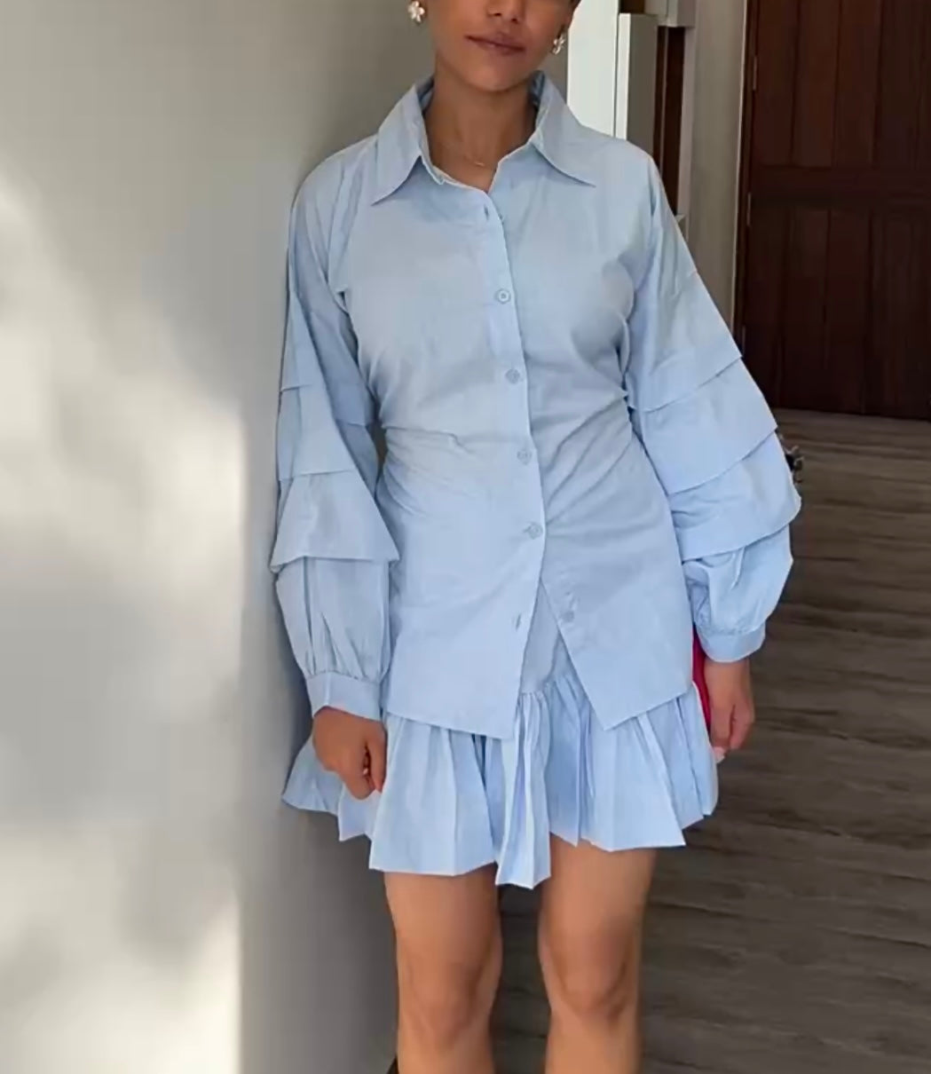 -Ruffle shirt with adjustable drawstrings at the back to cinch it your way