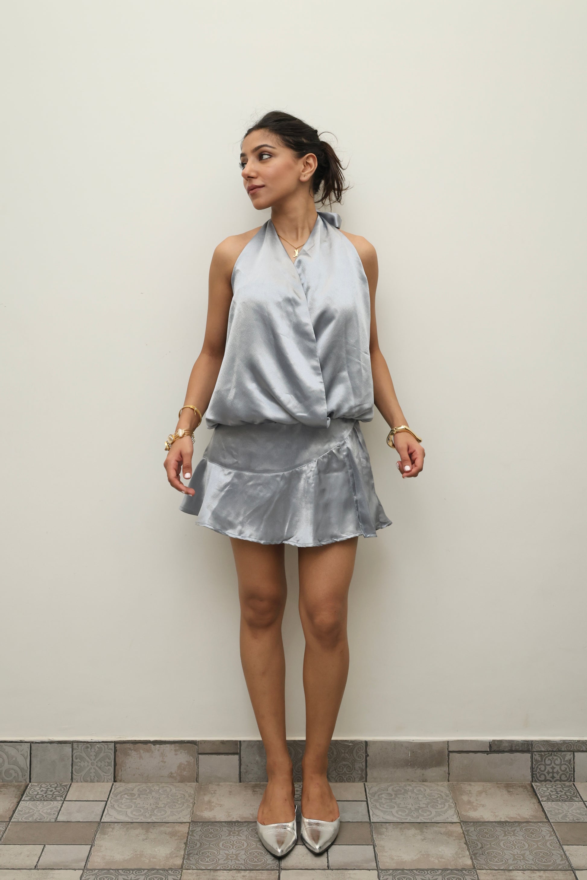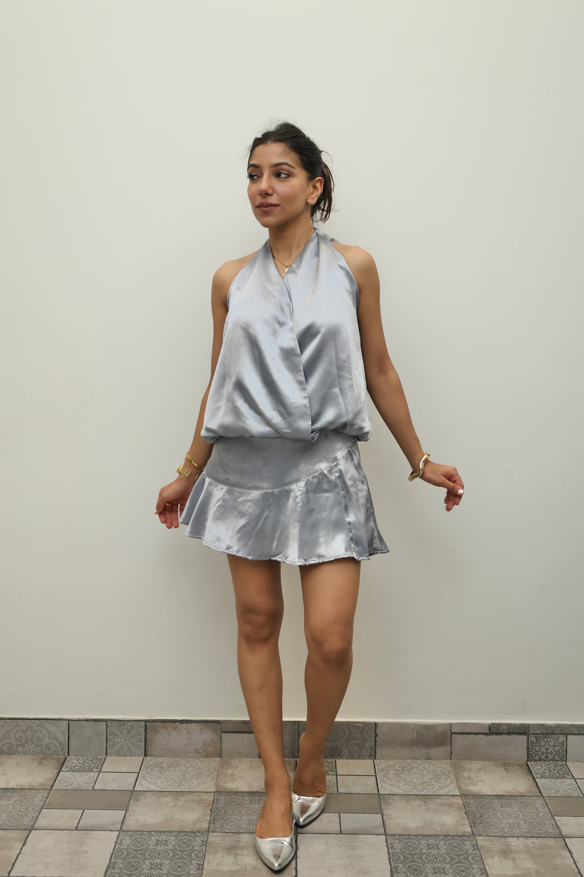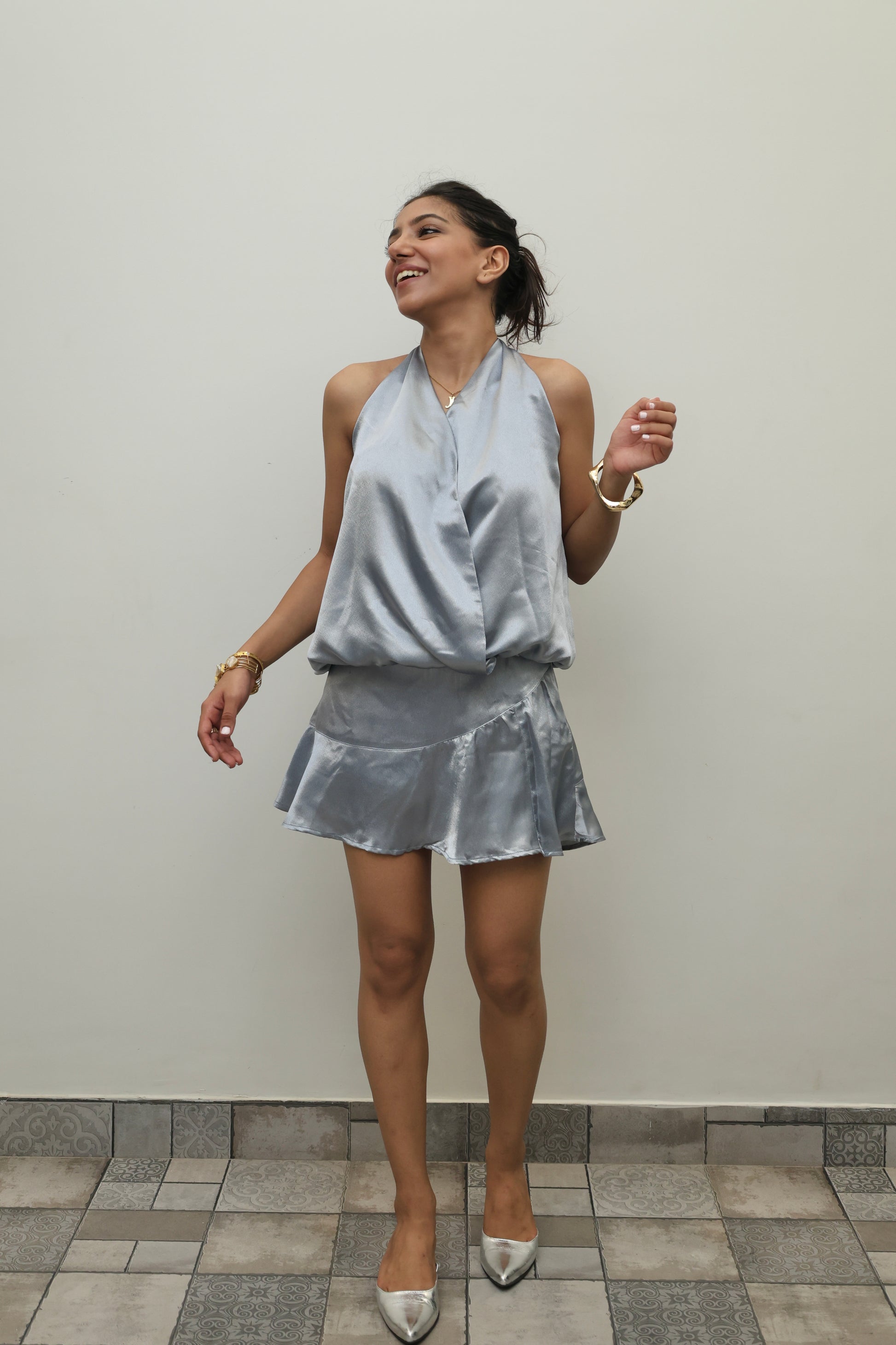 Chic, flirty, and made to move with you. This satin set is your go-to for when you want to look effortlessly put together — featuring a soft halter top and matching high-waisted skort in luxe, non-sheer fabric. Dress it up or down, it's made for moments that feel just right.
